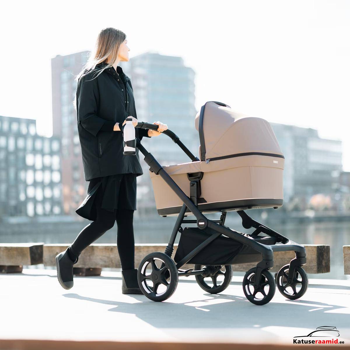 Komplekti sisu: Sisaldab Thule Sleek 2 raami, isteosa ja vankrikorvi (Bassinet).