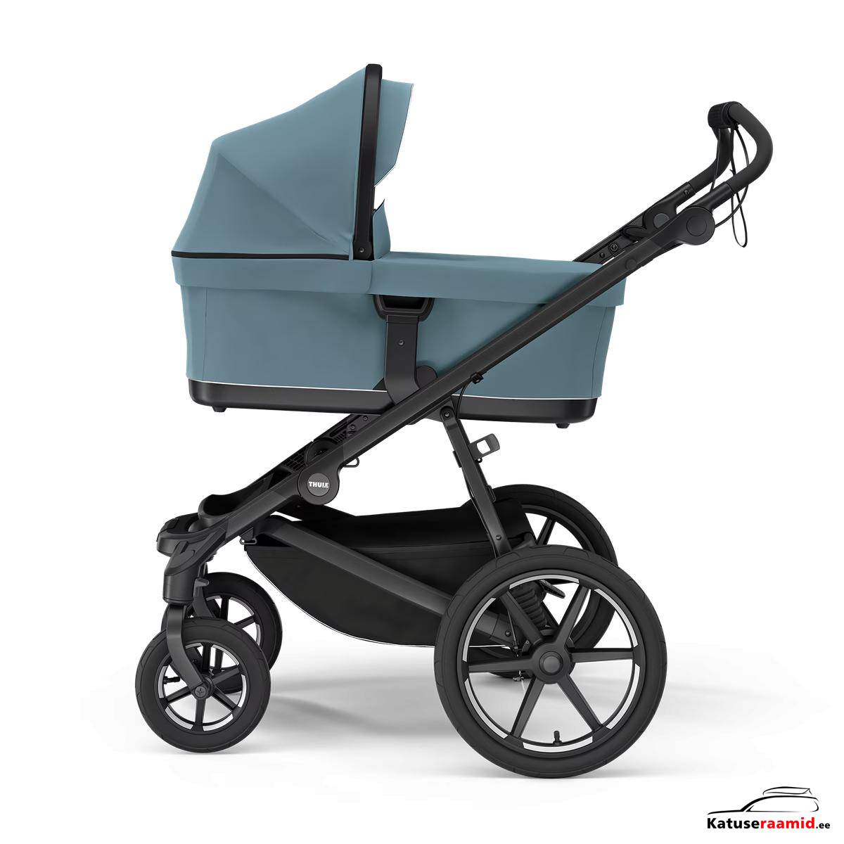 - Качественная подвеска в сочетании с надувными шинами обеспечивает плавную езду как родителю, так и ребенку по любой местности.
